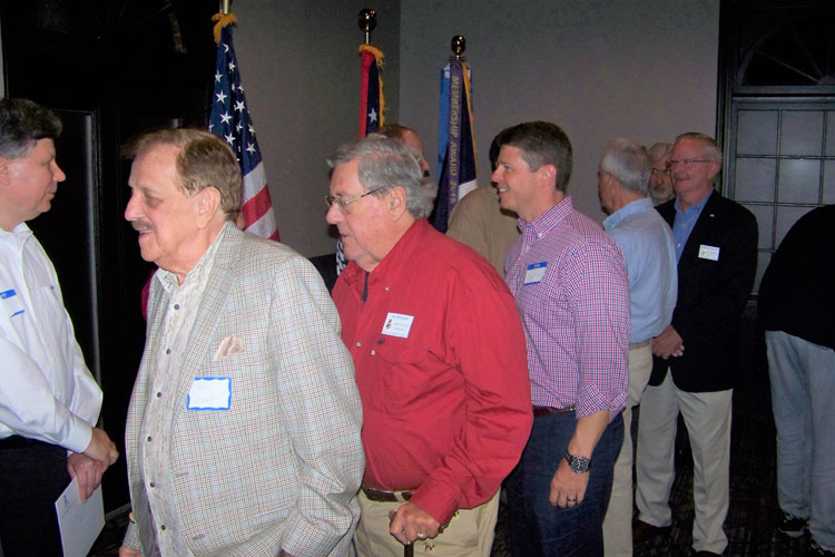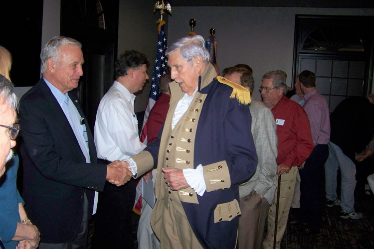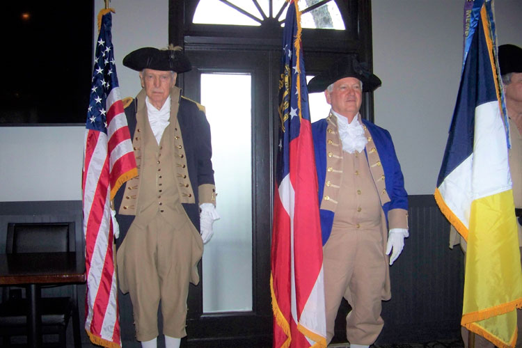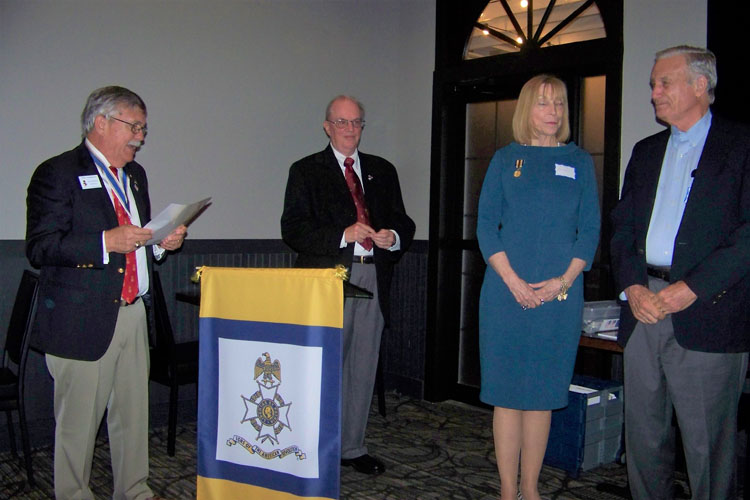 John Bivins (His wife Connie is to his Right), John Elwood, Tom Hughes, Charlie Fetter (for his son, Nicholas Lawrence Fetter), SAR President General Larry Guzy, and Mount Vernon Chapter Registrar Tom Chrisman.