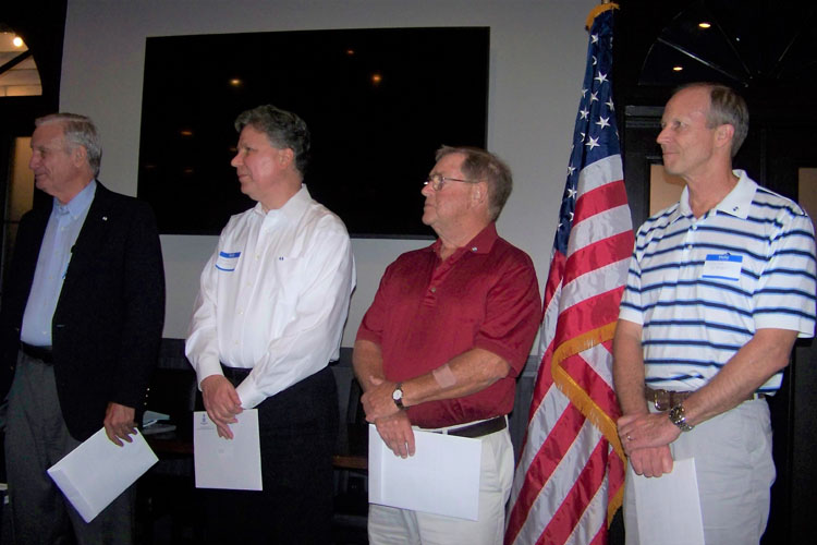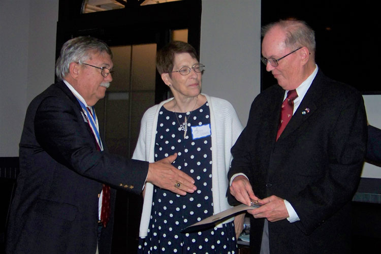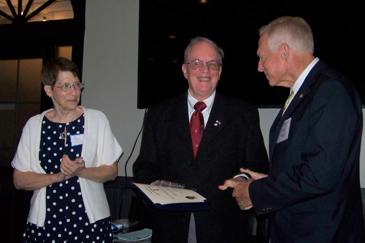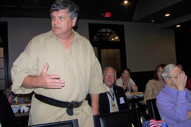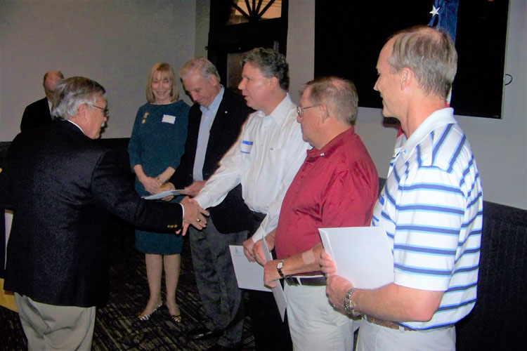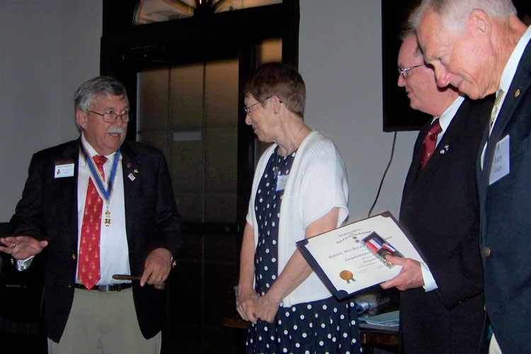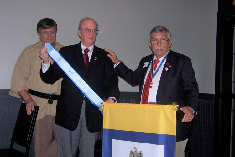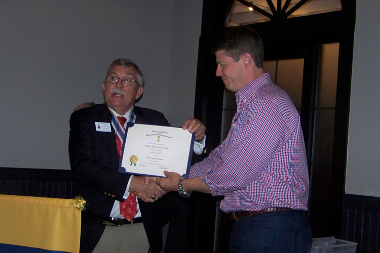 Chuck Olson presented the Robert E. Burt Boy Scout Volunteer Award by President General Larry Guzy and Chapter President Shep Hammack