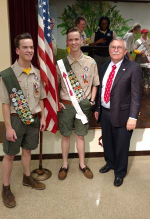 Eagle Scout Ethan Terrell (L), Eagle Scout Christian Terrell (M), Shep Hammack (R).