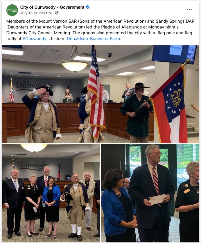 proposed a flag pole be placed at the Donaldson-Banister Farm location in Dunwoody to the Dunwoody city council and the Dunwoody Preservation Trust (DPT) in 2020.