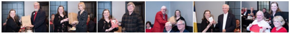 - December Gift Raffle - Chuck and Patsy Rann hosted the gift raffle. Winners included Connie Bivins, Tony Crowe, Ted Fricke, Tom Hughes, Richard McCrary, Ham McDonald, and Dave Tharp (Peter Stoddards book on Lewis Grizzard).