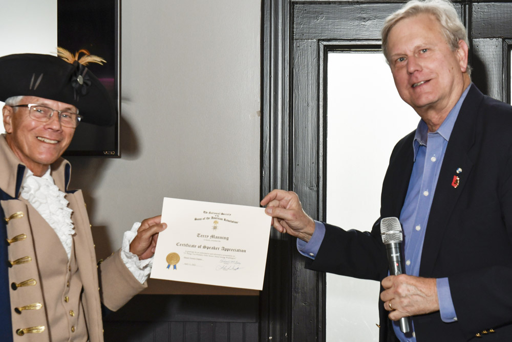 Chapter Vice President David Wellons presented Compatriot Guzy with a certificate to express the Chapter’s appreciation for his presentation.