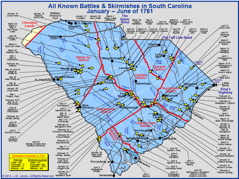 The Revolutionary War was actually won in the South, some say in South Carolina. [eg. KIngs Mountain, Battle of Cowpens, Francis Marion.]