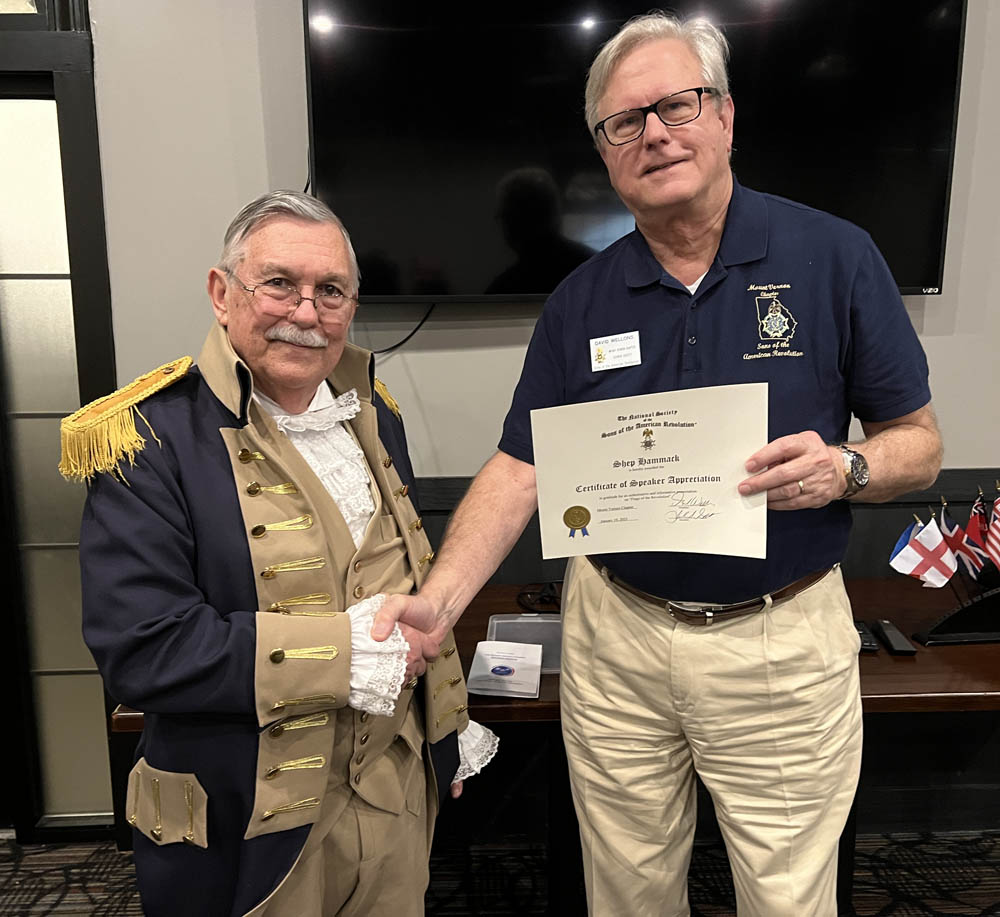Shep is currently the National Chairman of the SAR DAR Liaison Committee as well as the State of Georgia Chairman of the SAR DAR Liaison Committee. He will be inducted as the Metro Regional VP of the Georgia SAR Society at the Annual GASSAR Conference on January 28th.