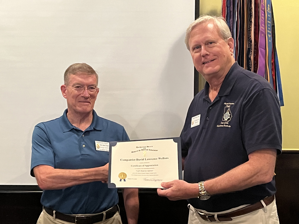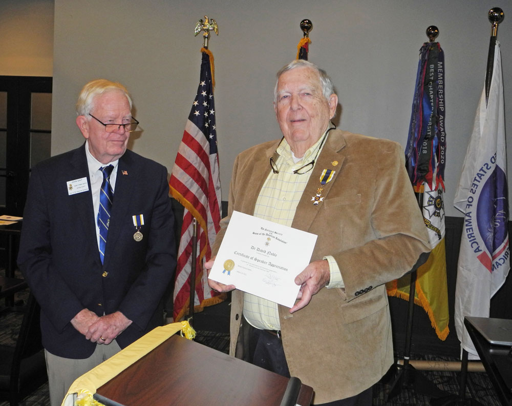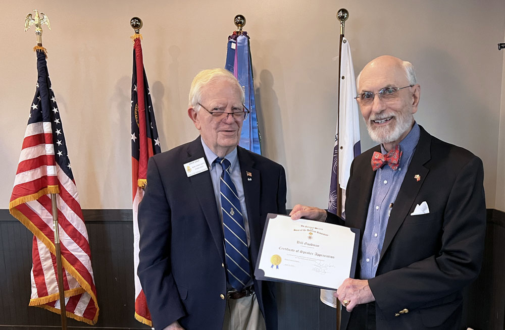 Chapter Vice President David Wellons was the guest speaker at the monthly meeting of the Atlanta Chapter of the Sons of the American Revolution,