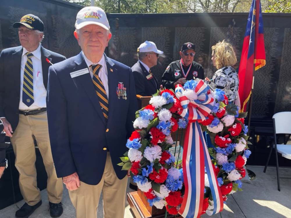 Our Veterans Chairman Ham McDonald, his wife Judy, John Galt, and Chuck Rann attended the ceremony at Marietta's National Cemetery on this cloudy Saturday.