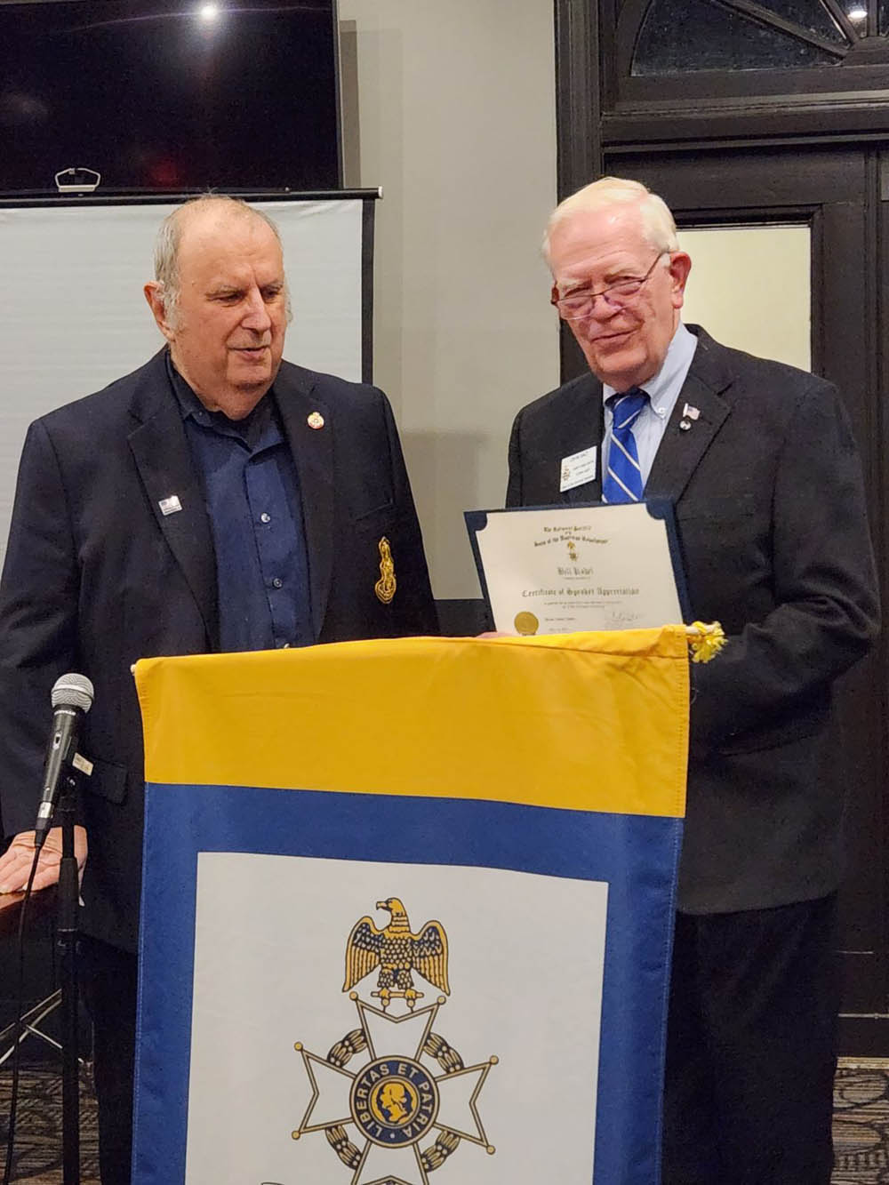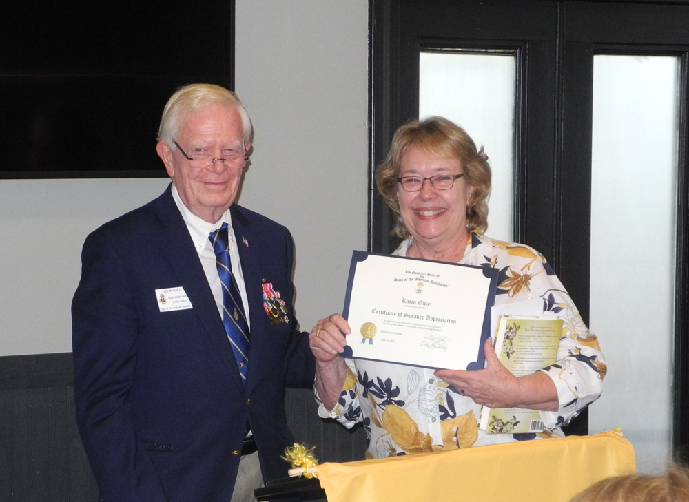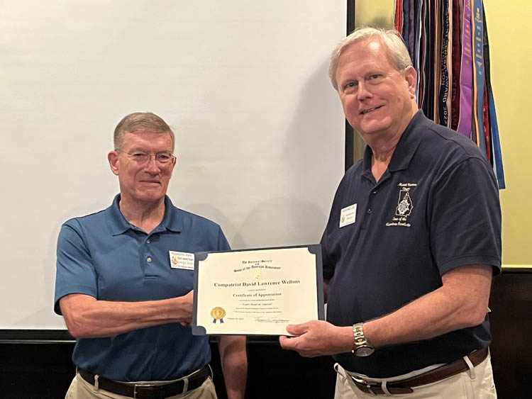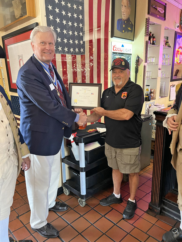 Chapter Vice President John Galt presented Compatriot Bill Kabel with a Certificate of Appreciation for his presentation.