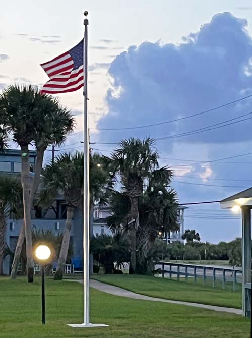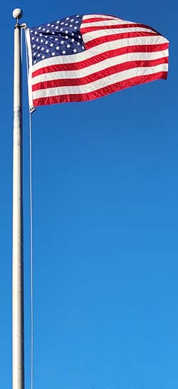 The city has two flag poles, one at City Hall and the other at Veterans Triangle Park that are either ceremoniously raised and lowered each day, or lit throughout the night. This meets the US Flag code and the requirements for an SAR Flag Certificate.